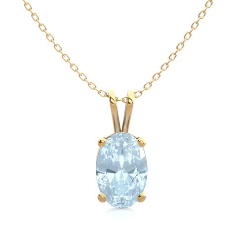1/2 Carat Oval Shape Aquamarine Necklace In 14K Yellow Gold Over Sterling Silver, 18 Inches