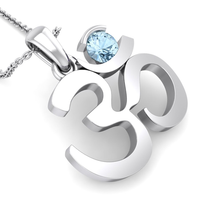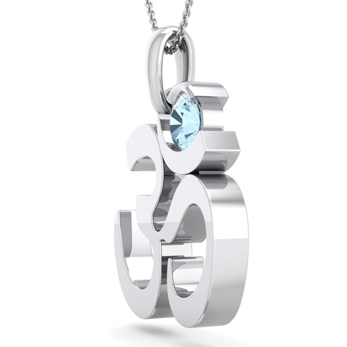 Retrograde Birthstones™ 1/4 Carat Aquamarine Om Necklace In 14 Karat White Gold, 18 Inches