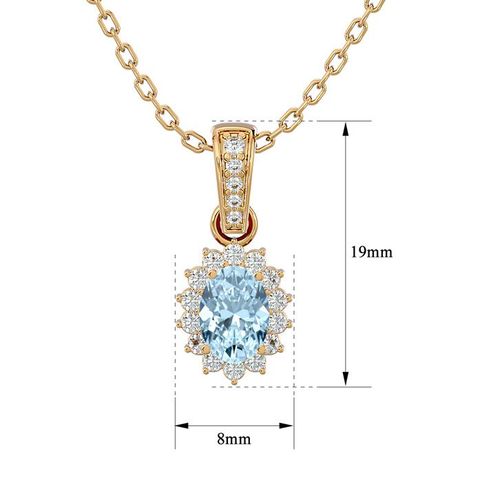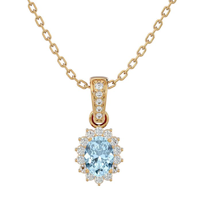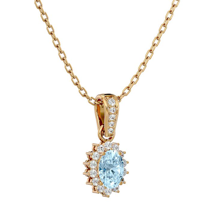 1 Carat Oval Shape Aquamarine and Diamond Necklace In 14 Karat Yellow Gold, 18 Inches