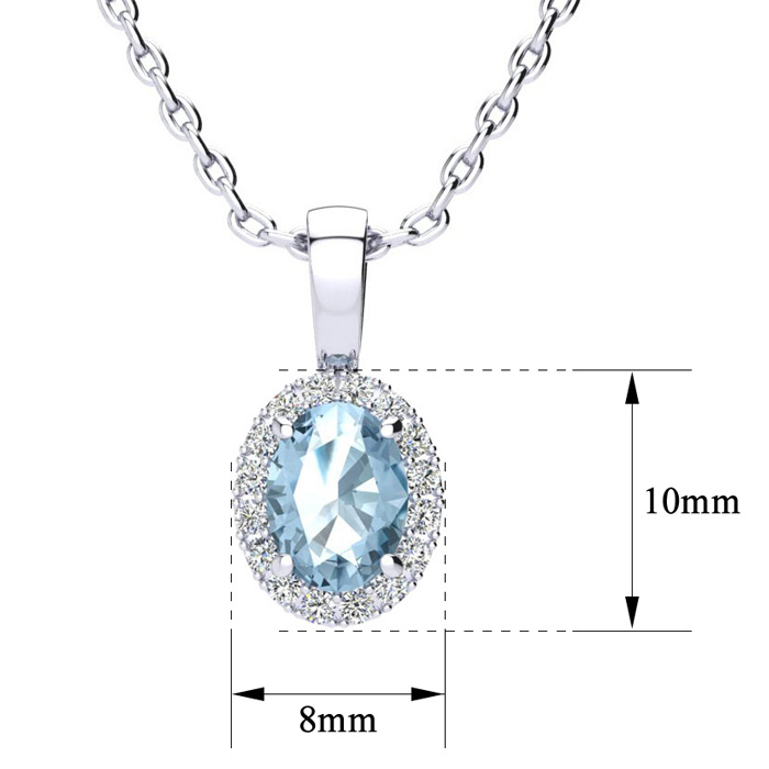 1 Carat Oval Shape Aquamarine and Halo Diamond Necklace In Sterling Silver With 18 Inch Chain
