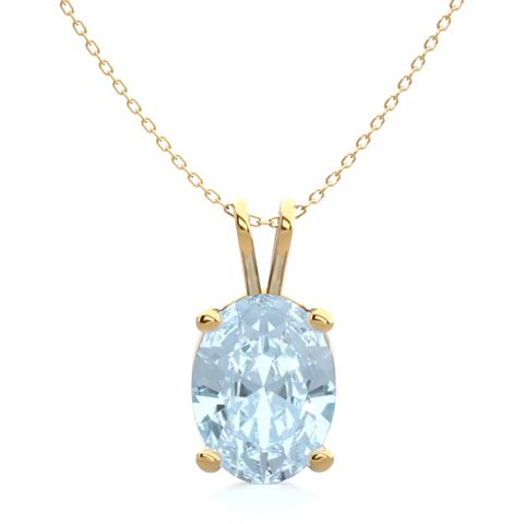 1 Carat Oval Shape Aquamarine Necklace In 14K Yellow Gold Over Sterling Silver, 18 Inches