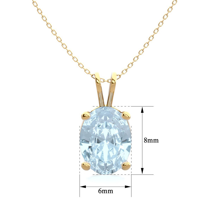 1 Carat Oval Shape Aquamarine Necklace In 14K Yellow Gold Over Sterling Silver, 18 Inches