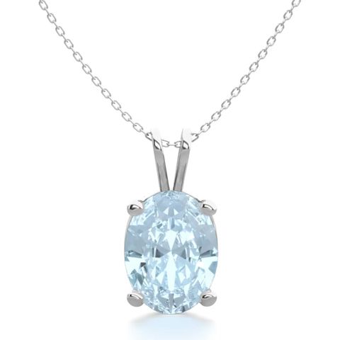 1 Carat Oval Shape Aquamarine Necklace In Sterling Silver, 18 Inches