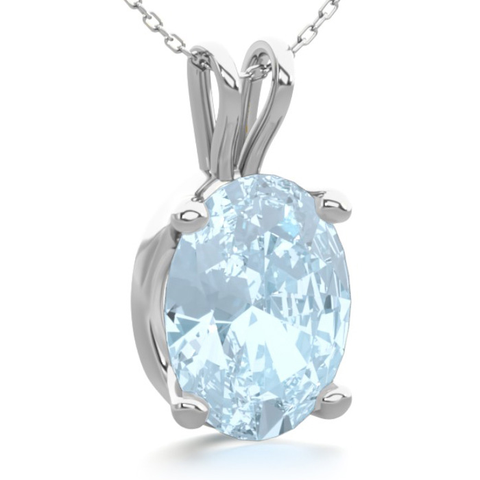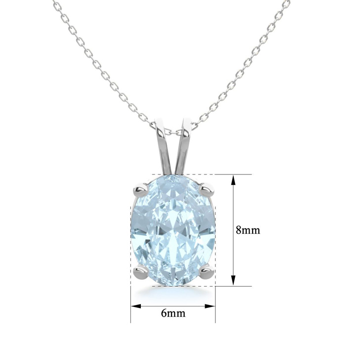 1 Carat Oval Shape Aquamarine Necklace In Sterling Silver, 18 Inches