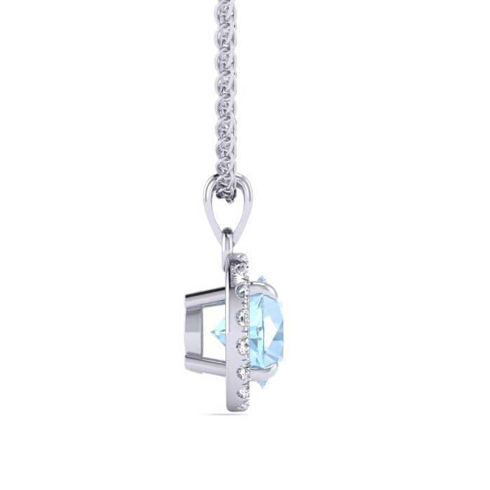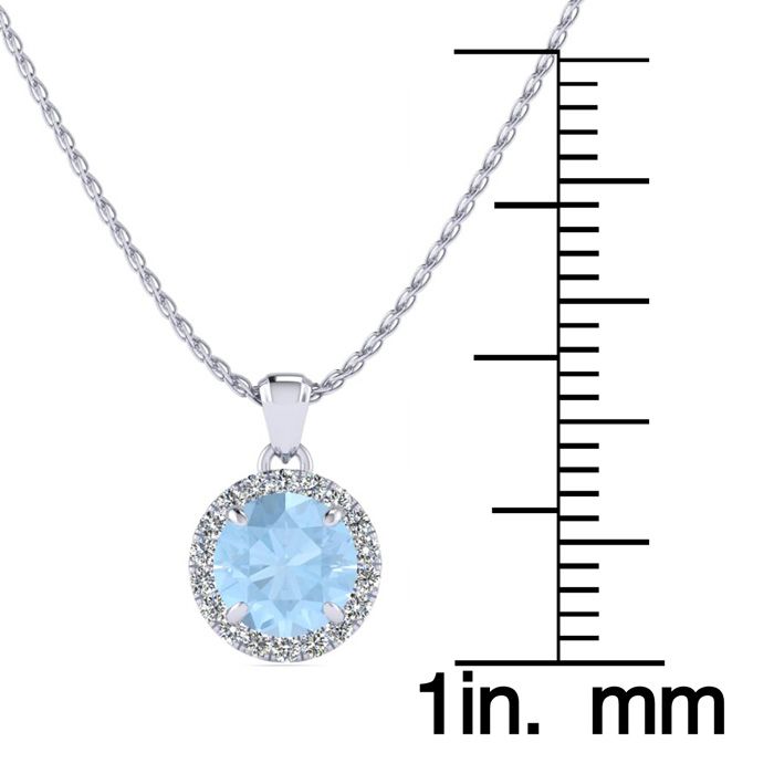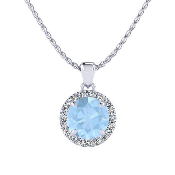 1 Carat Round Shape Aquamarine and Halo Diamond Necklace In 14 Karat White Gold