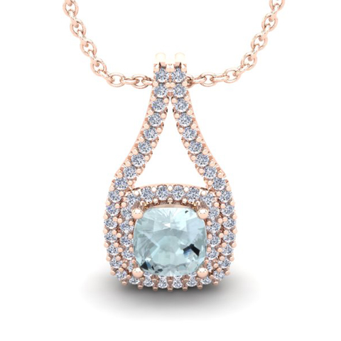 Choosing whether to have accent diamonds on your aquamarine necklace is truly a matter of style and taste. An aquamarine necklace can look very nice as a solitaire but adding diamonds is by far the most popular design choice. Diamonds do increase the price of an aquamarine necklace but not as much as you might think as the diamonds are generally small. A popular aquamarine necklace design is to have diamonds surrounding the aquamarine in a halo frame. The diamond halo makes the aquamarine look a bit larger but most importantly it provides a distinctive color contrast that makes the aquamarine quite beautiful. Another popular design is to have accent diamonds on the sides of the aquamarine necklace. This type of aquamarine necklace design lends an elegance without being too flashy. Without a doubt, combining both a diamond halo and accent diamond in your aquamarine necklace is the most popular choice.