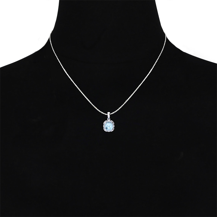 2 Carat Cushion Cut Aquamarine and Diamond Necklace In Sterling Silver With 18 Inch Chain