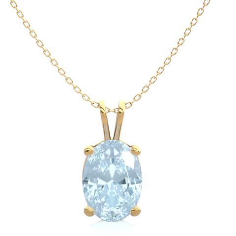 3/4 Carat Oval Shape Aquamarine Necklace In 14K Yellow Gold Over Sterling Silver, 18 Inches