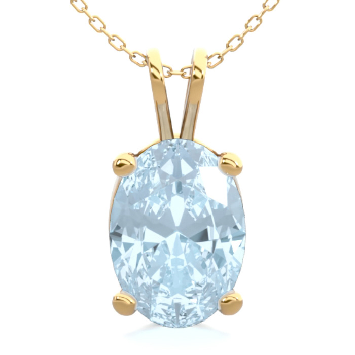 3/4 Carat Oval Shape Aquamarine Necklace In 14K Yellow Gold Over Sterling Silver, 18 Inches
