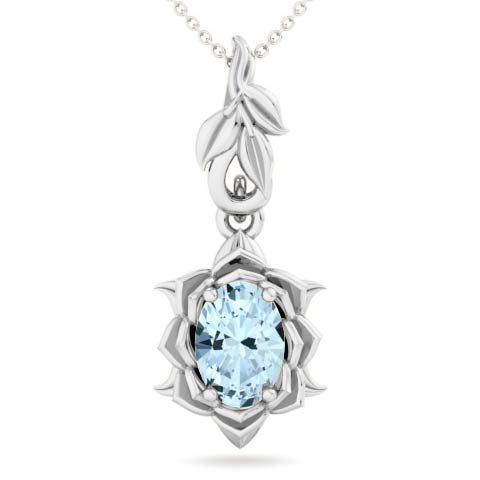 3/4 Carat Oval Shape Aquamarine Ornate Necklace In 14K White Gold