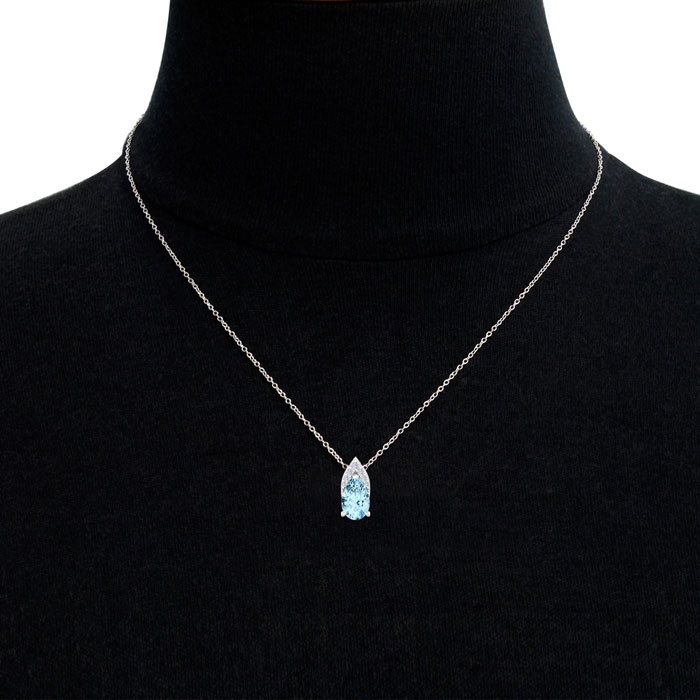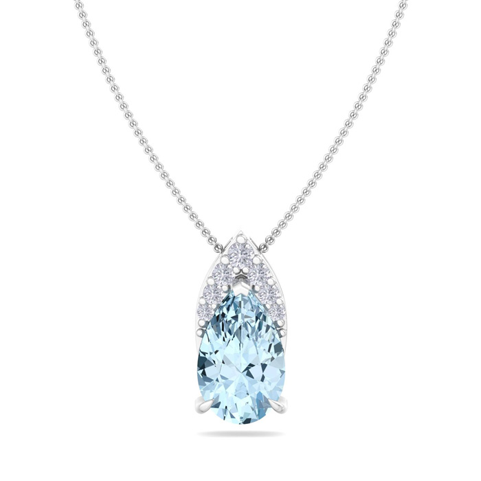 7/8 Carat Pear Shape Aquamarine and Diamond Necklace In 14 Karat White Gold, 18 Inches