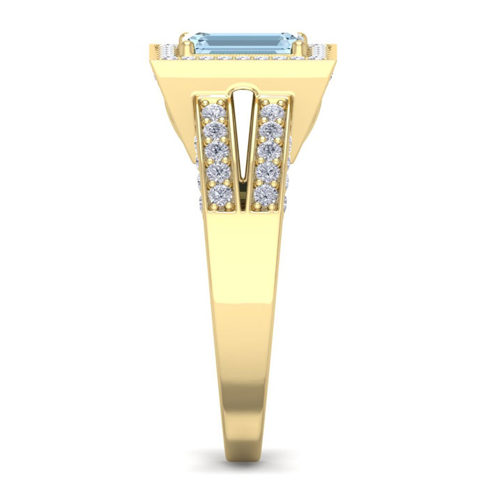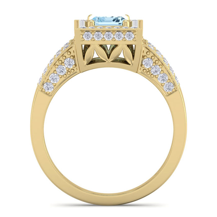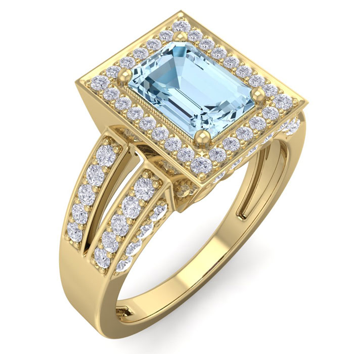 1 1/2 Carat Aquamarine and Halo Diamond Ring In 14 Karat Yellow Gold
