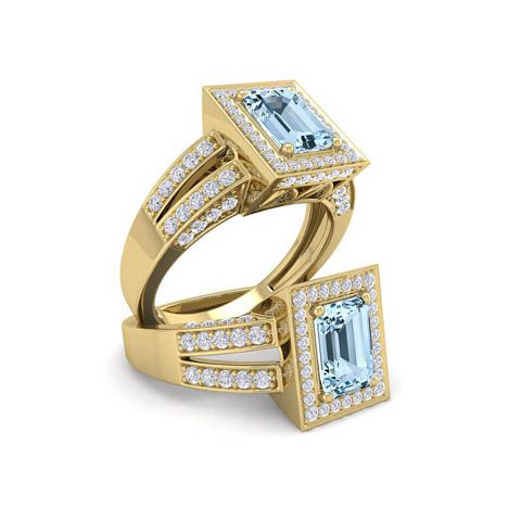 1 1/2 Carat Aquamarine and Halo Diamond Ring In 14 Karat Yellow Gold