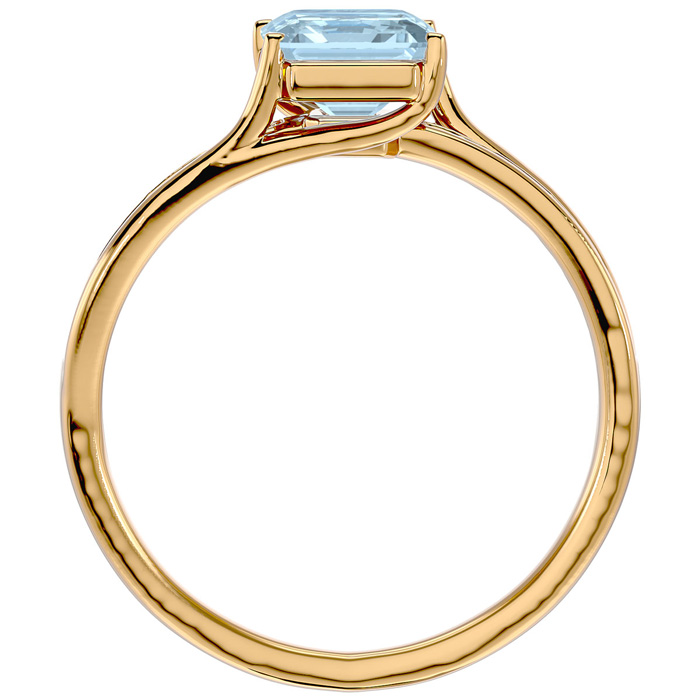 1 1/2 Carat Emerald Shape Aquamarine and Diamond Ring In 14 Karat Yellow Gold