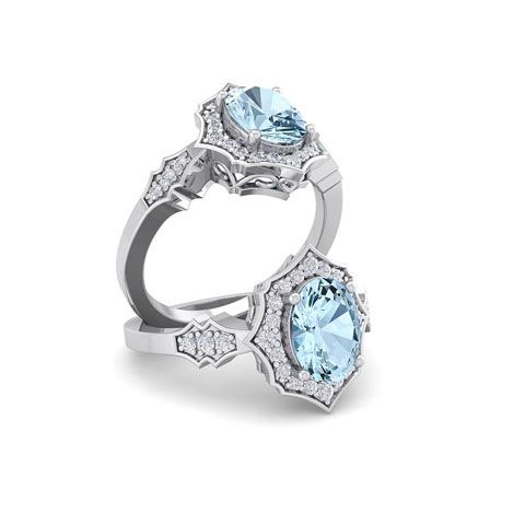 1 1/2 Carat Oval Shape Aquamarine and Diamond Ring In 14 Karat White Gold