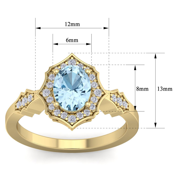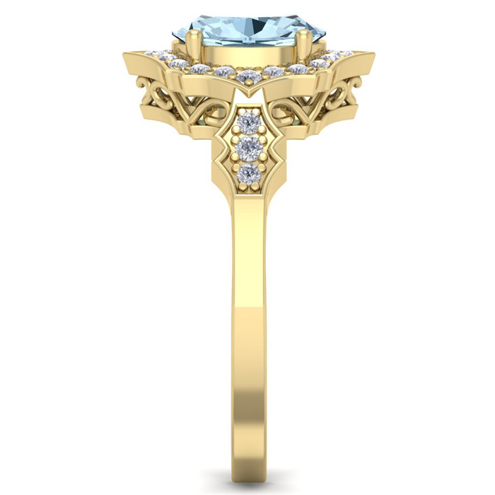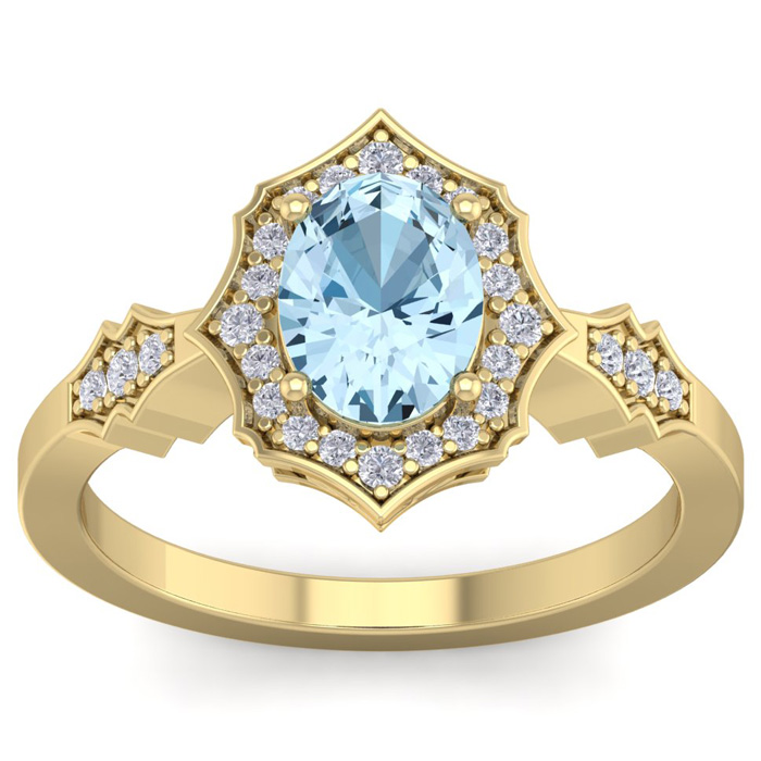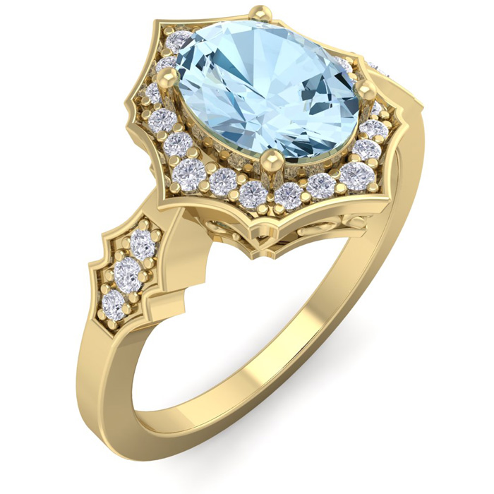 Retrograde Birthstones™ 1 1/2 Carat Oval Shape Aquamarine and Diamond Ring In 14 Karat Yellow Gold