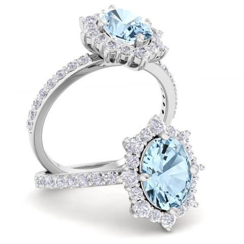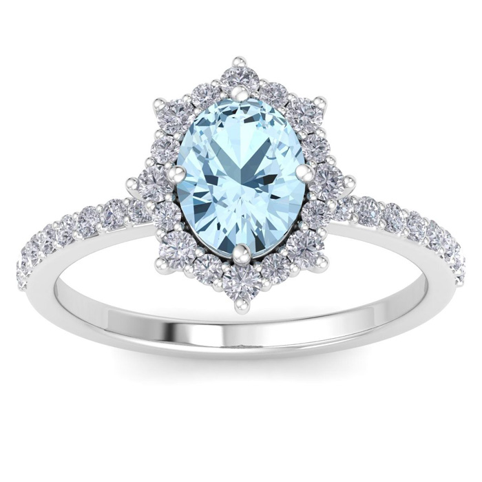 1 1/2 Carat Oval Shape Aquamarine and Diamond Ring In 14K White Gold