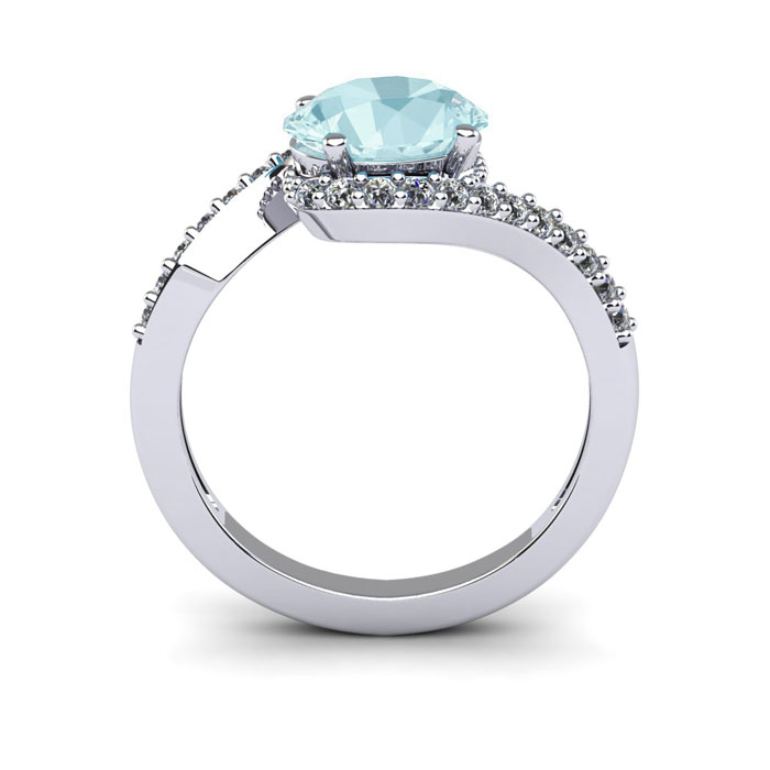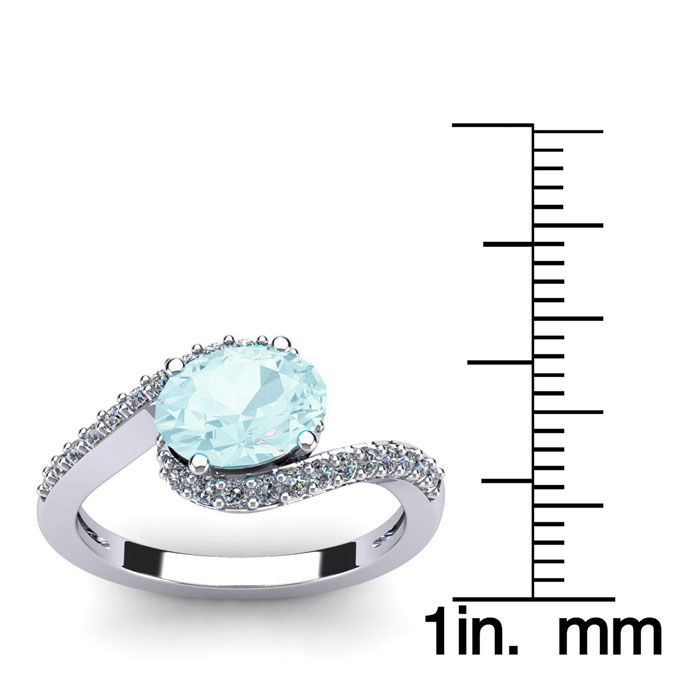 1 1/2 Carat Oval Shape Aquamarine and Halo Diamond Ring In 14 Karat White Gold