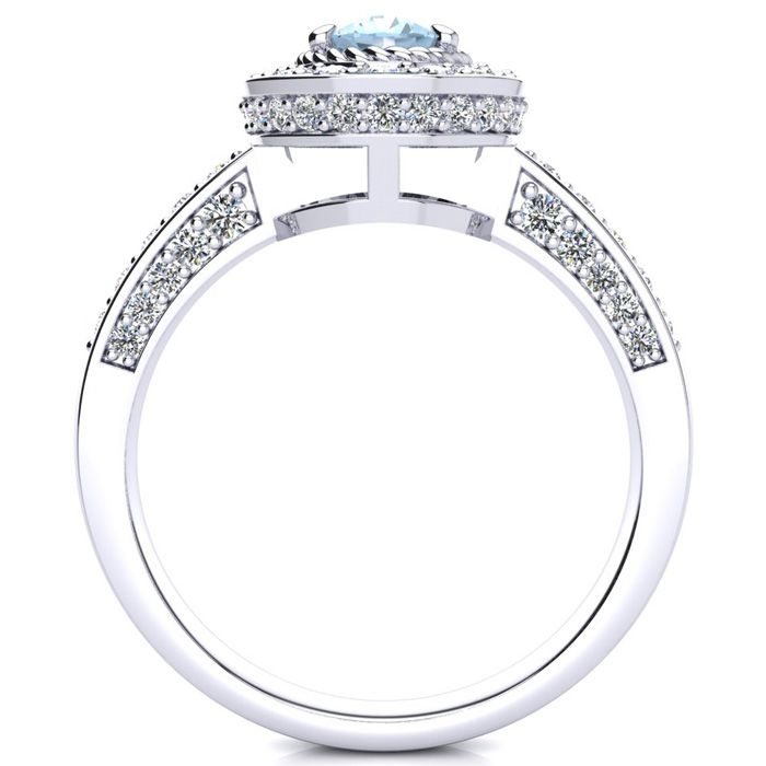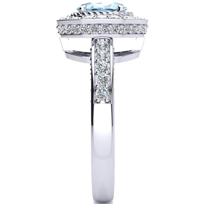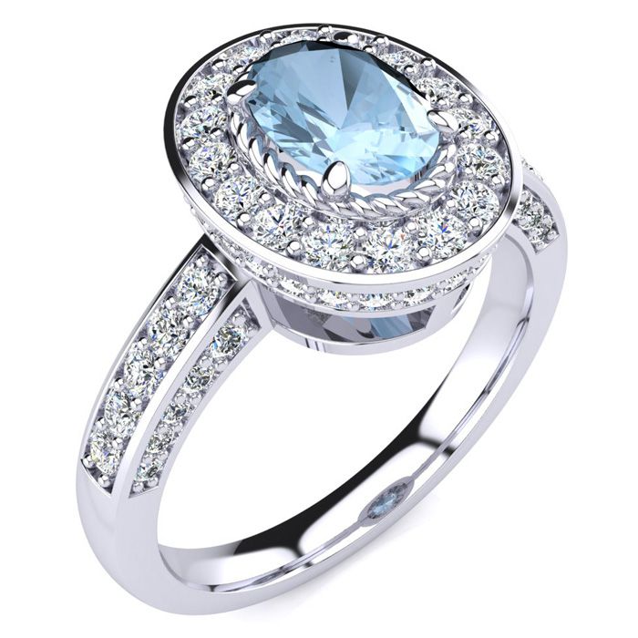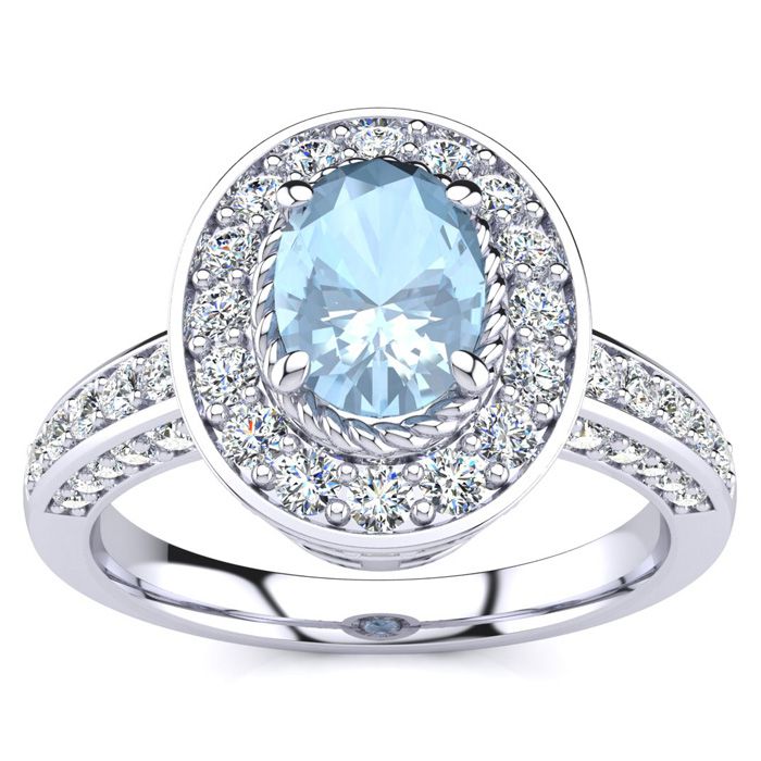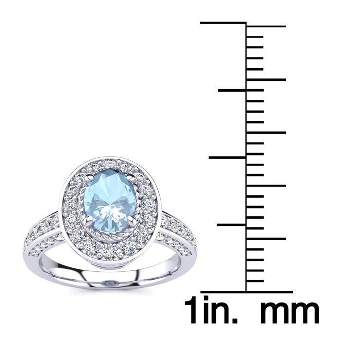 1 1/2 Carat Oval Shape Aquamarine and Halo Diamond Ring In 14 Karat White Gold