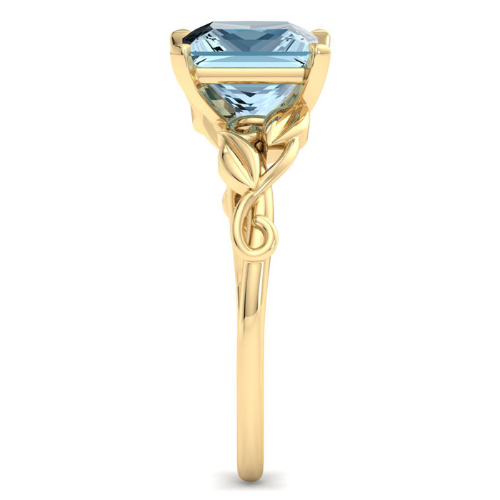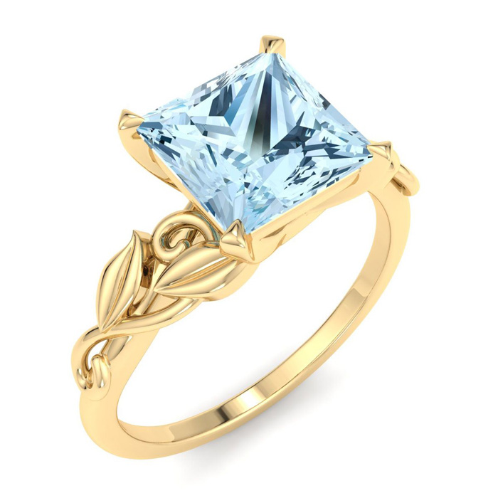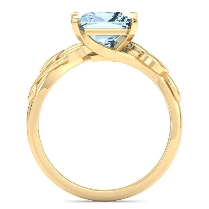 1 1/2 Carat Princess Shape Aquamarine Ornate Ring In 14K Yellow Gold