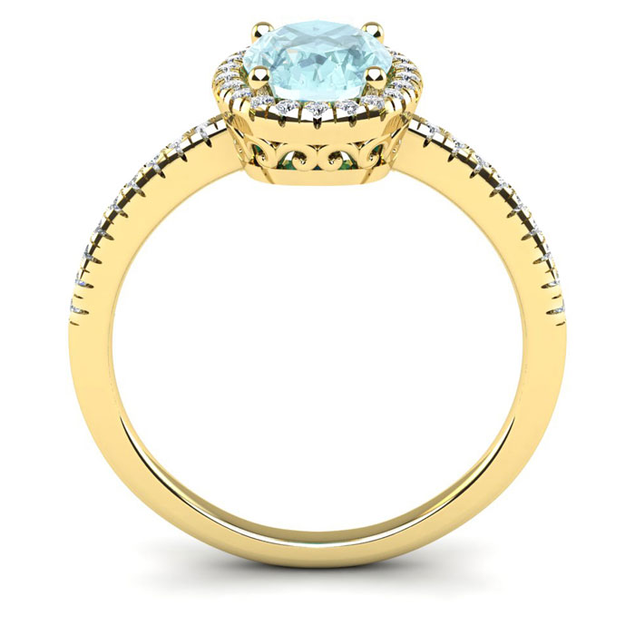 1 1/3 Carat Oval Shape Aquamarine and Halo Diamond Ring In 14 Karat Yellow Gold