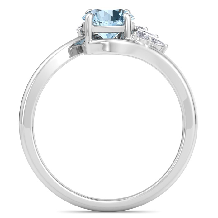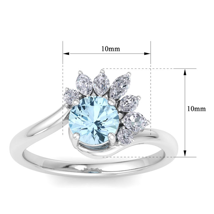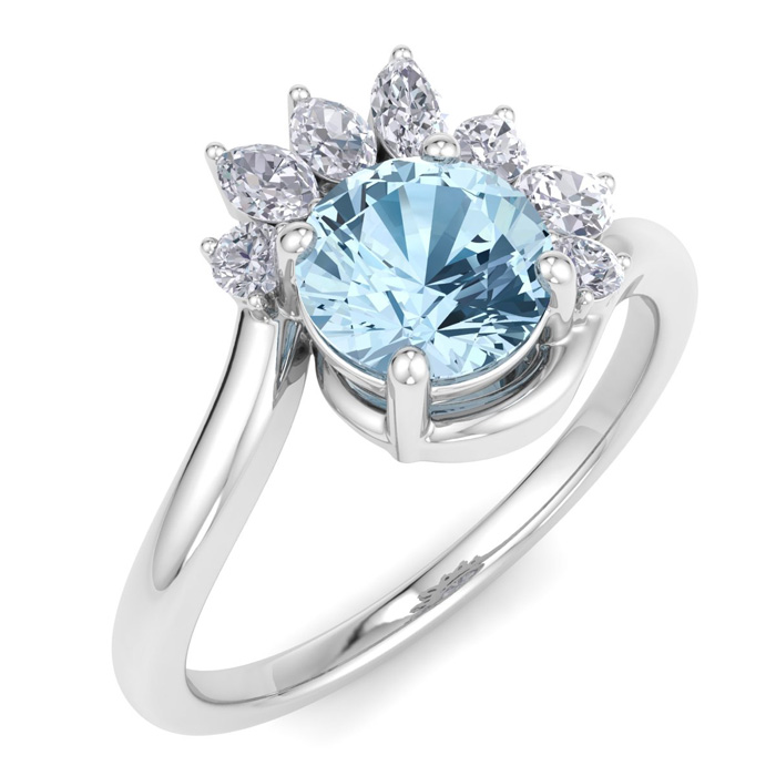 1 1/4 Carat Aquamarine and Marquise Crown Halo Diamond Ring In 14K White Gold