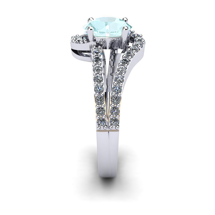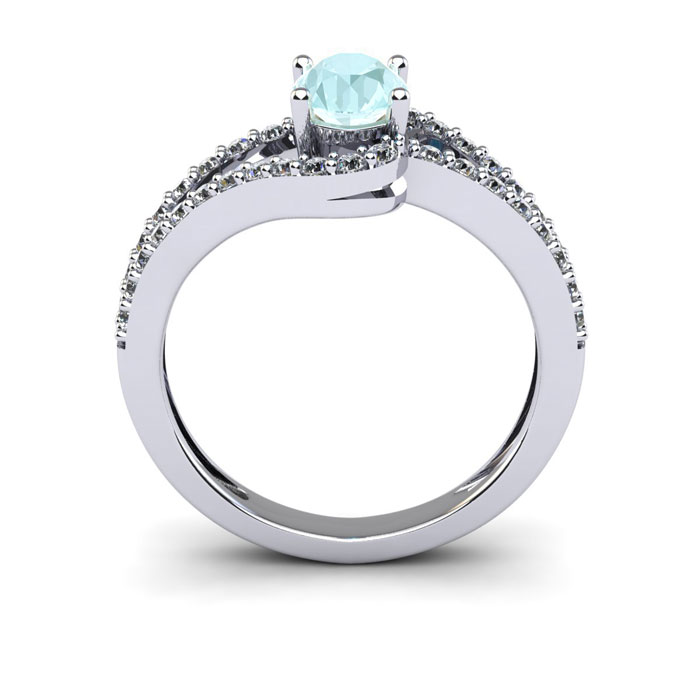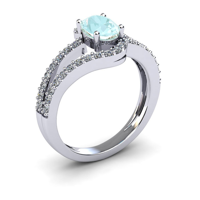 1 1/4 Carat Oval Shape Aquamarine and Fancy Diamond Ring In 14 Karat White Gold