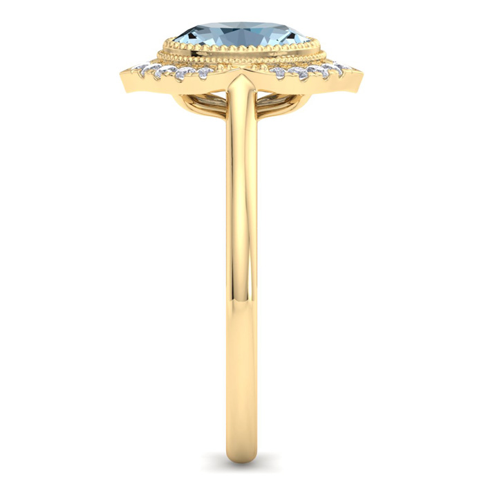 1 1/5 Carat Oval Shape Aquamarine and Diamond Ring In 14K Yellow Gold