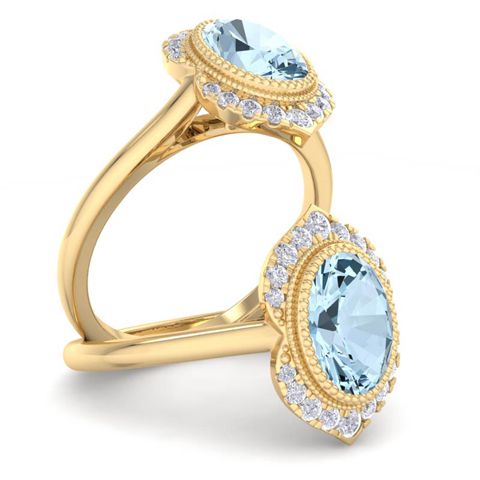 1 1/5 Carat Oval Shape Aquamarine and Diamond Ring In 14K Yellow Gold