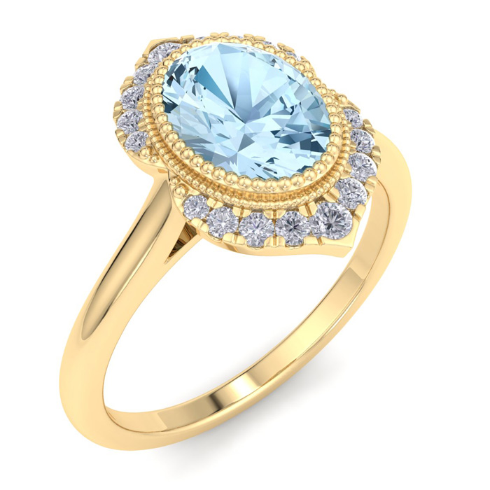 Retrograde Birthstones™ 1 1/5 Carat Oval Shape Aquamarine and Diamond Ring In 14K Yellow Gold
