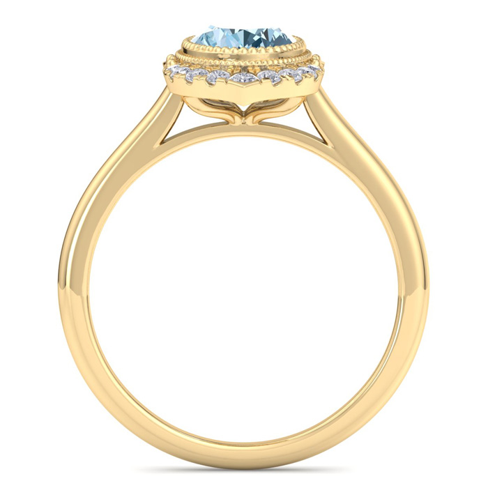 Retrograde Birthstones™ 1 1/5 Carat Oval Shape Aquamarine and Diamond Ring In 14K Yellow Gold