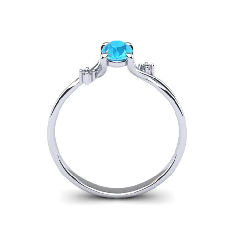 1/2 Carat Oval Shape Aquamarine and Two Diamond Accent Ring In 14 Karat White Gold