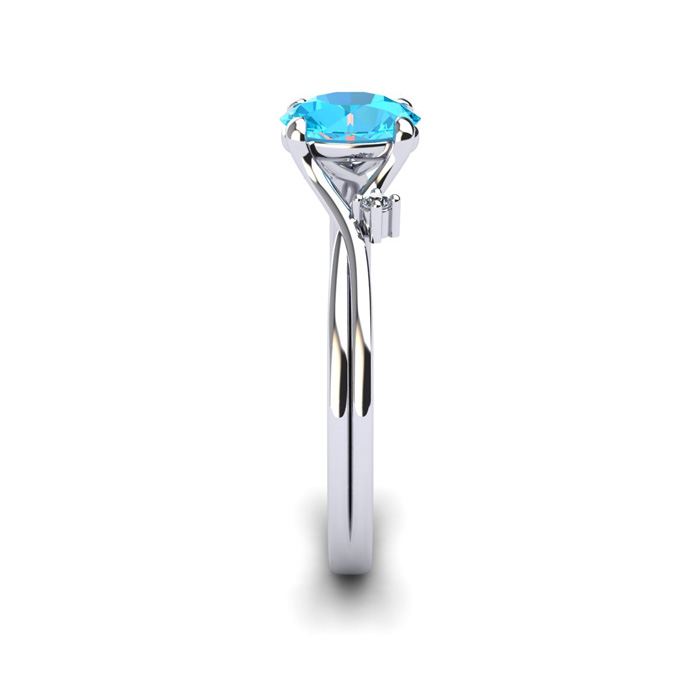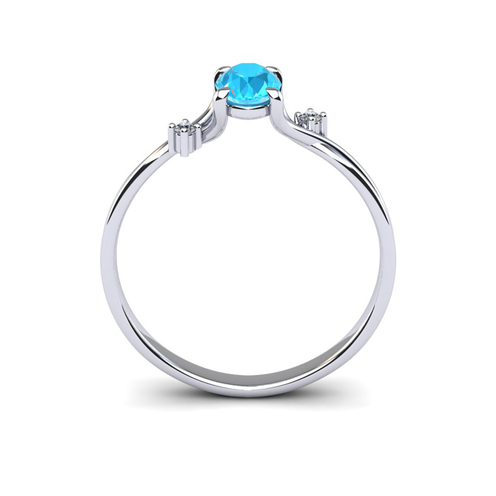 1/2 Carat Oval Shape Aquamarine and Two Diamond Accent Ring In 14 Karat White Gold