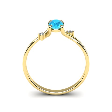 1/2 Carat Oval Shape Aquamarine and Two Diamond Accent Ring In 14 Karat Yellow Gold