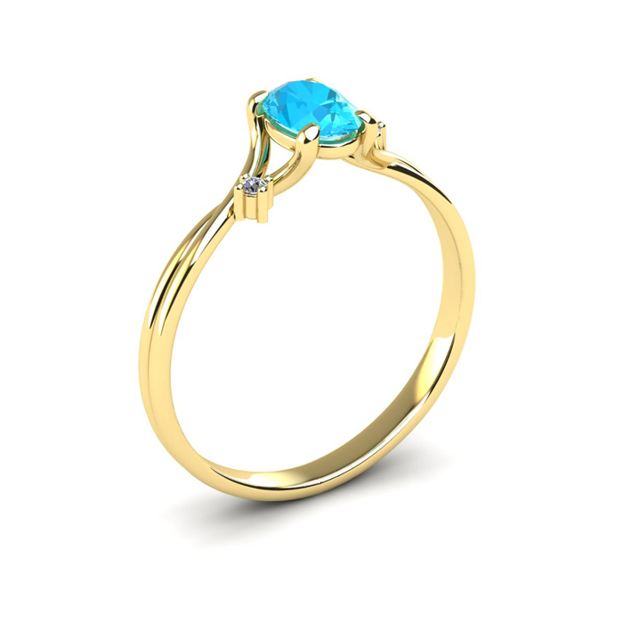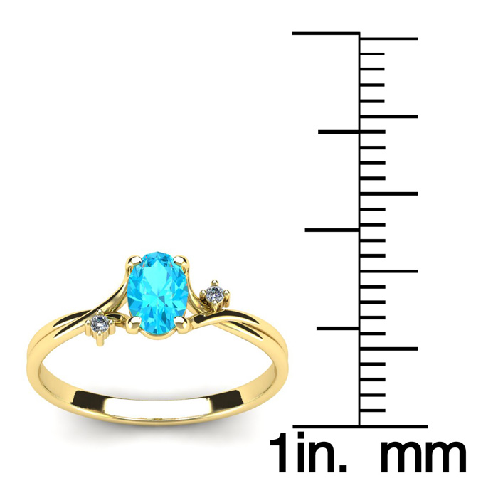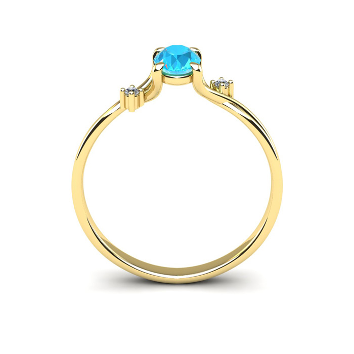 1/2 Carat Oval Shape Aquamarine and Two Diamond Accent Ring In 14 Karat Yellow Gold