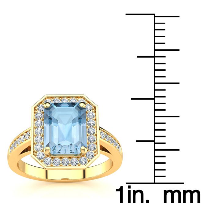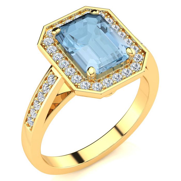 1 3/4 Carat Aquamarine and Halo Diamond Ring In 14 Karat Yellow Gold