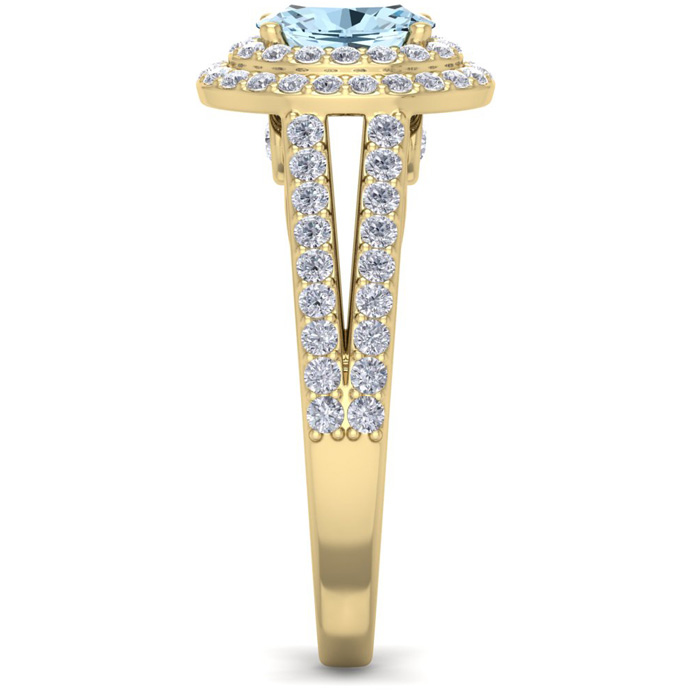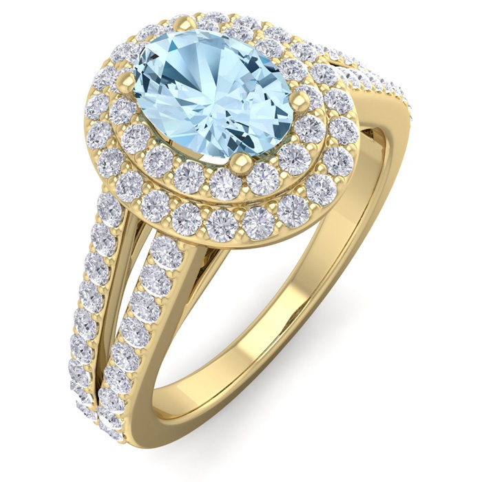 1 3/4 Carat Oval Shape Aquamarine and Halo Diamond Ring In 14 Karat Yellow Gold