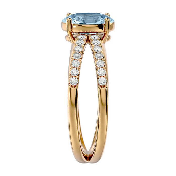1.40 Carat Oval Shape Aquamarine and Diamond Ring In 14 Karat Yellow Gold