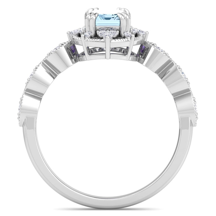 1 Carat Aquamarine and Halo Diamond Ring In 14K White Gold