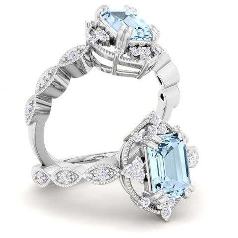 1 Carat Aquamarine and Halo Diamond Ring In 14K White Gold