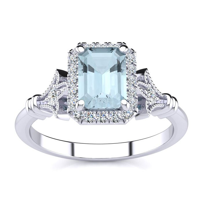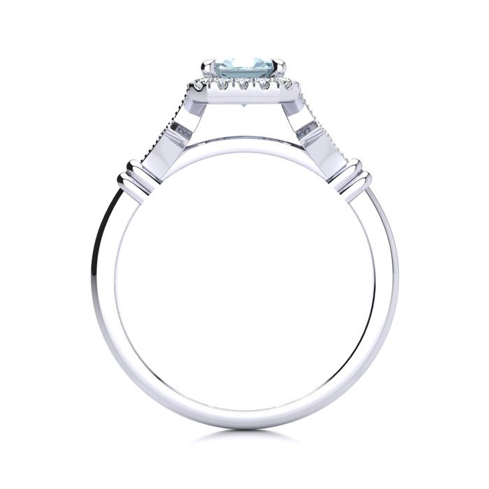 1 Carat Aquamarine and Halo Diamond Vintage Ring In 14 Karat White Gold