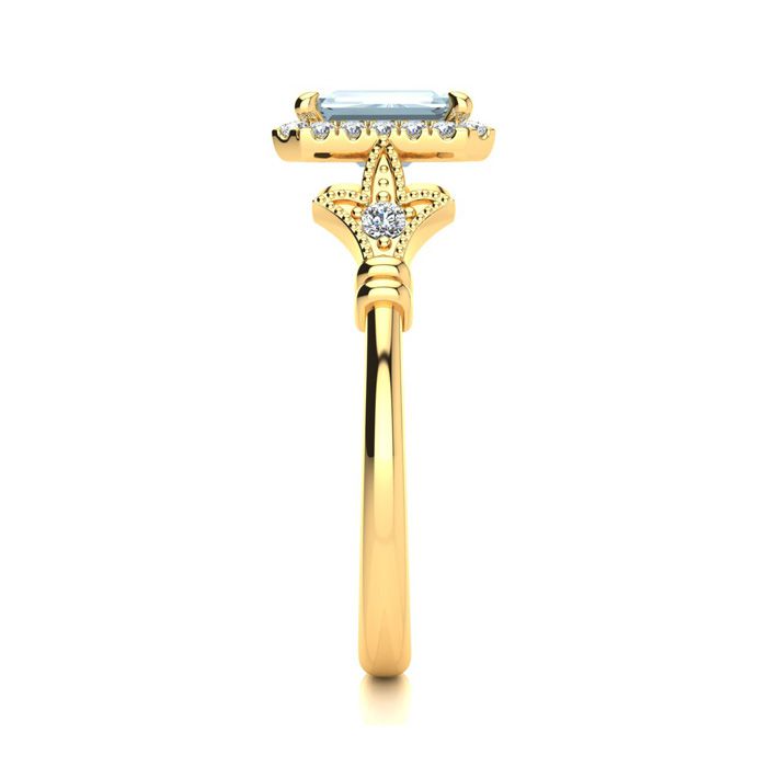 Retrograde Birthstones™ 1 Carat Aquamarine and Halo Diamond Vintage Ring In 14 Karat Yellow Gold