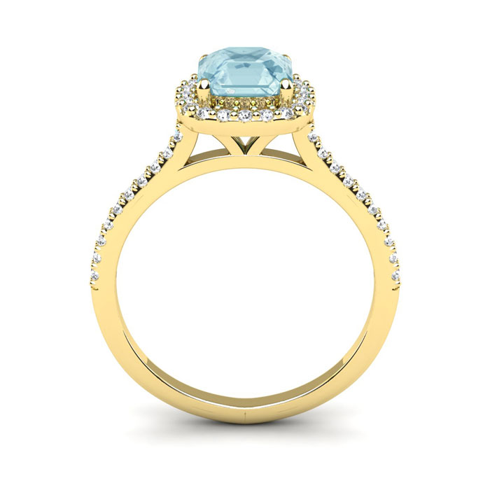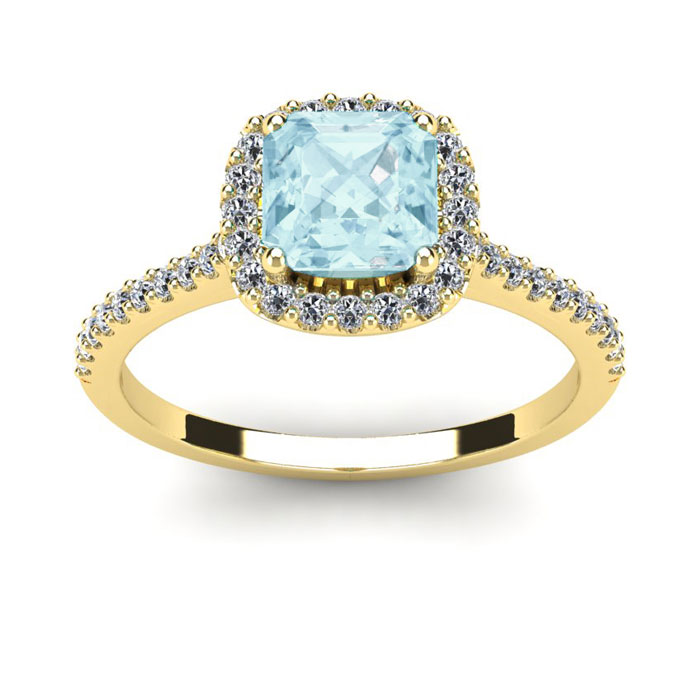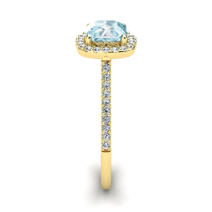1 Carat Cushion Cut Aquamarine and Halo Diamond Ring In 14K Yellow Gold