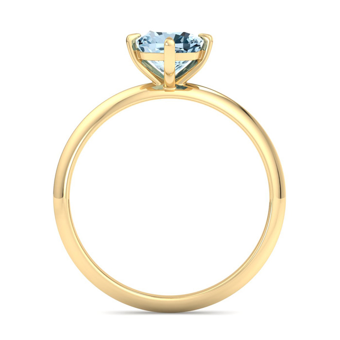 1 Carat Cushion Shape Aquamarine Ring In 14K Yellow Gold