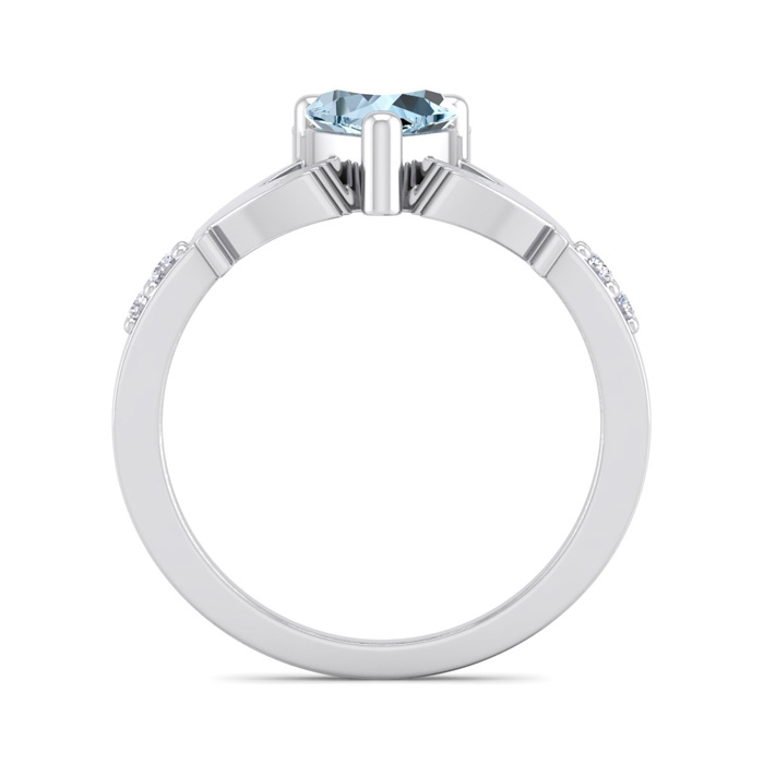 This aquamarine ring features one 6x6mm heart shape aquamarine gemstone. It is surrounded by 4 sparkling diamonds totaling 0.06 carats in I-J color, I1-I2 clarity. Total carat weight is approximately 1.06 carats. This ring is in sterling silver.