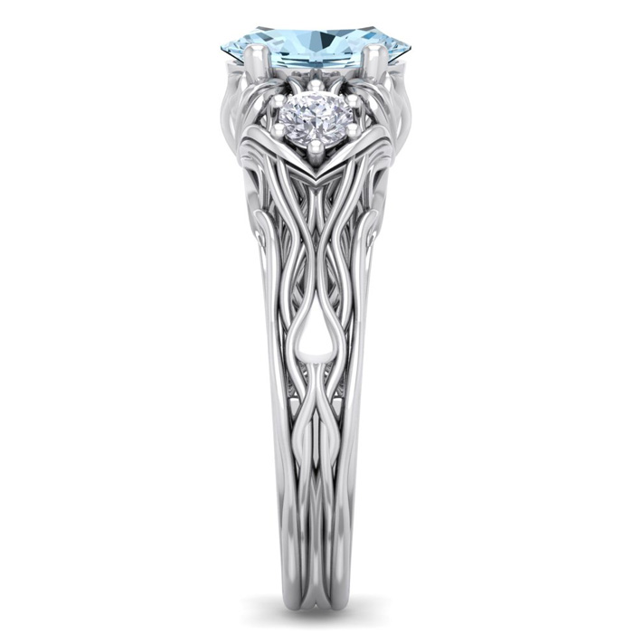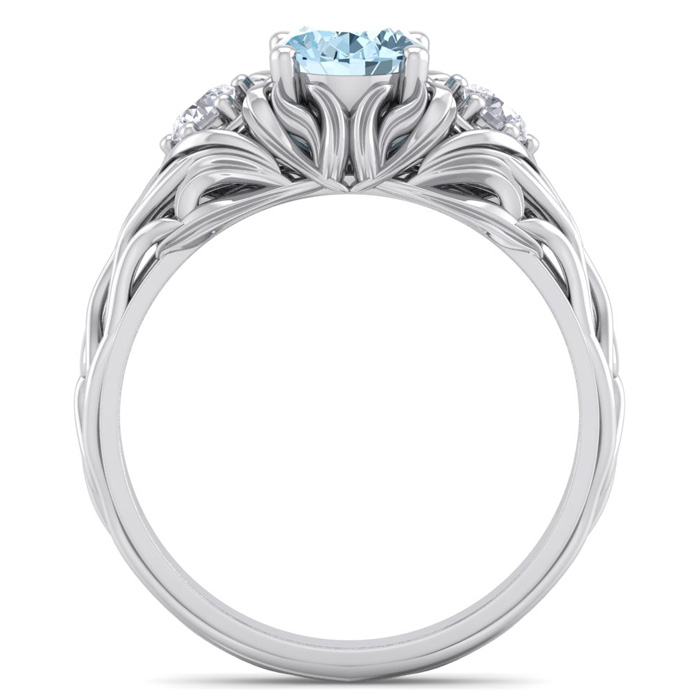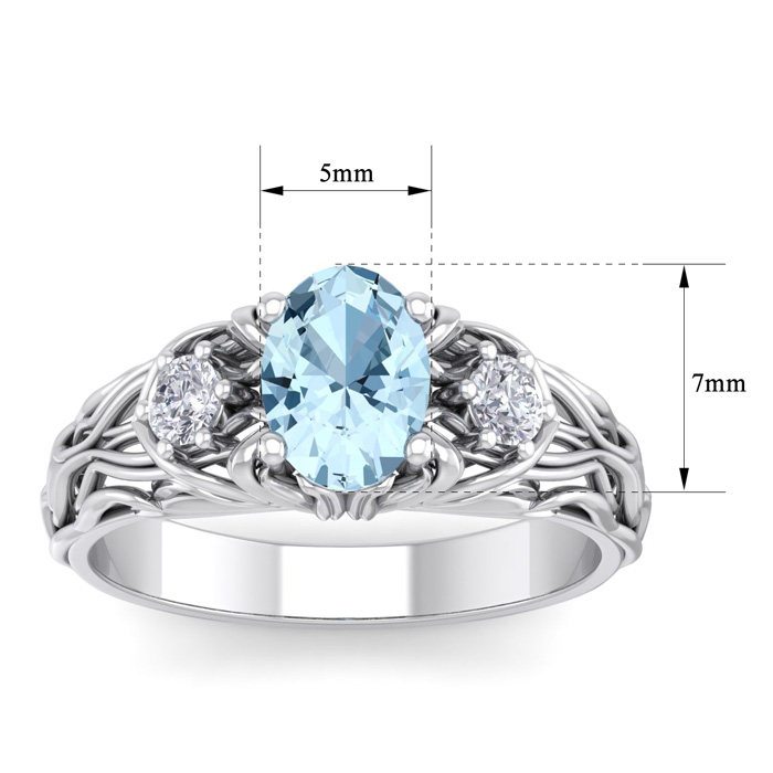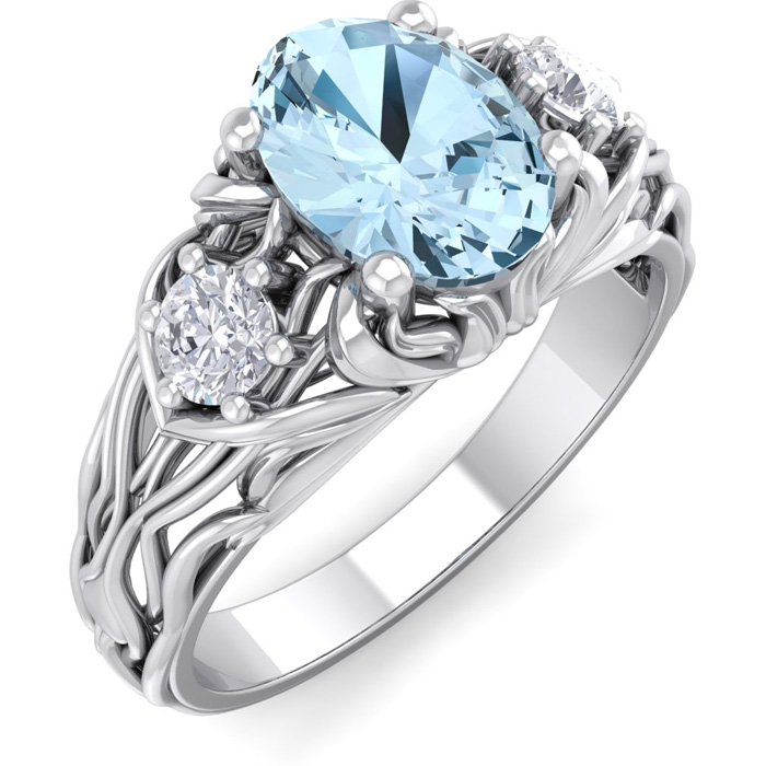 1 Carat Oval Shape Aquamarine and Diamond Intricate Vine Engagement Ring In 14 Karat White Gold