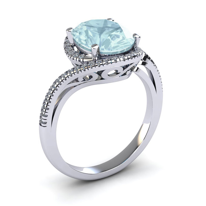 1 Carat Oval Shape Aquamarine and Halo Diamond Ring In 14 Karat White Gold