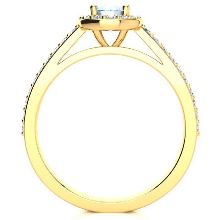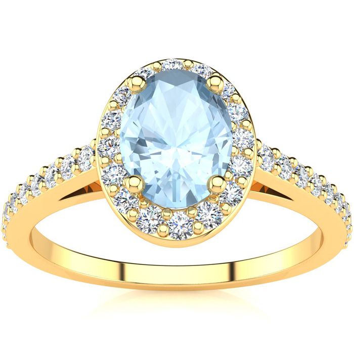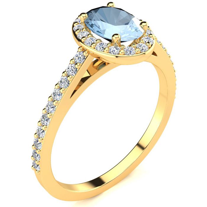 1 Carat Oval Shape Aquamarine and Halo Diamond Ring In 14 Karat Yellow Gold