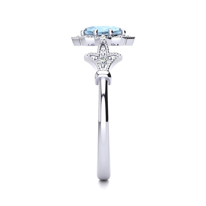 1 Carat Oval Shape Aquamarine and Halo Diamond Ring In Sterling Silver