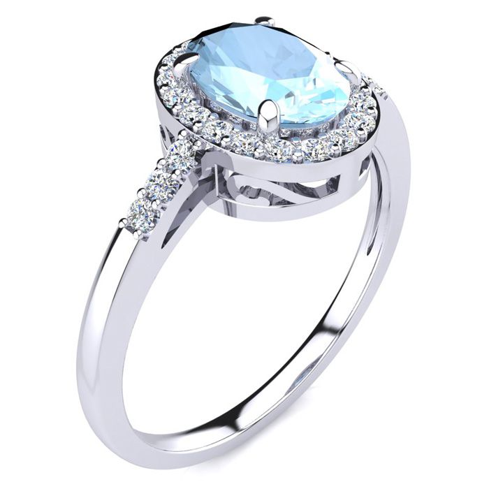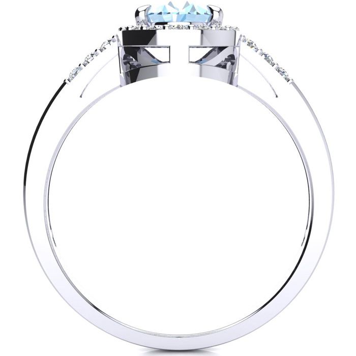 1 Carat Oval Shape Aquamarine and Halo Diamond Ring In Sterling Silver